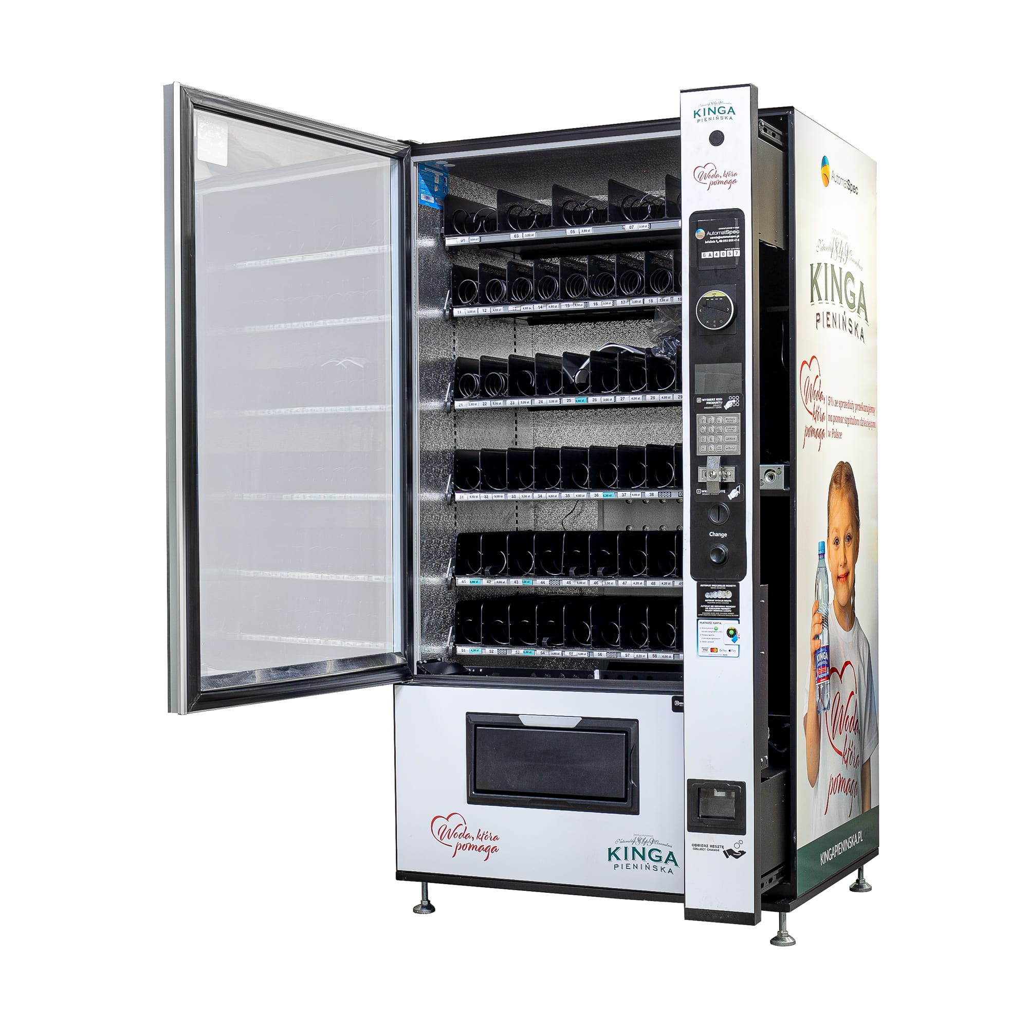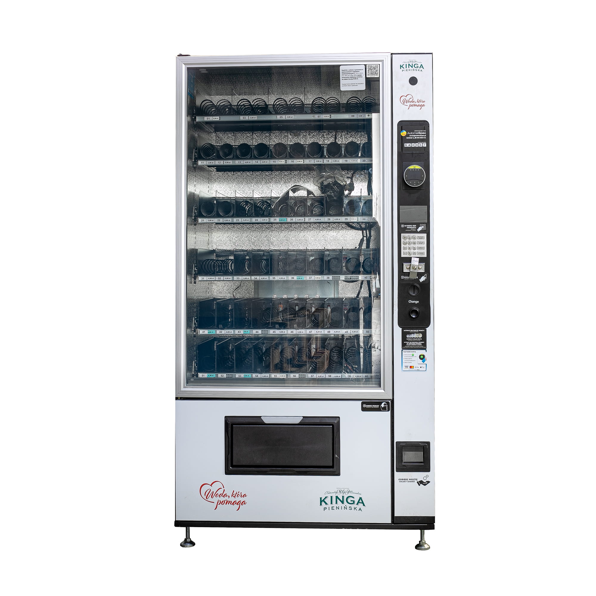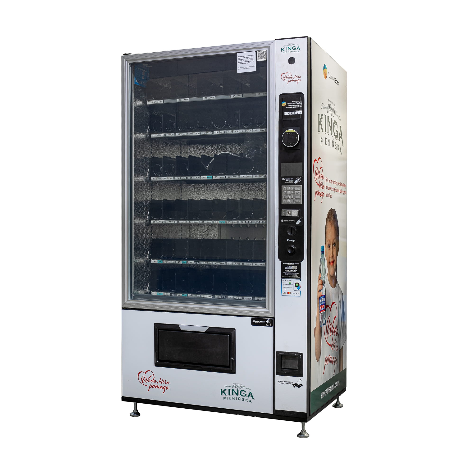 Maszyna vendingowa chińskiego producenta na napoje butelkowane, puszki, przekąski, batony, kanapki, sałatki.