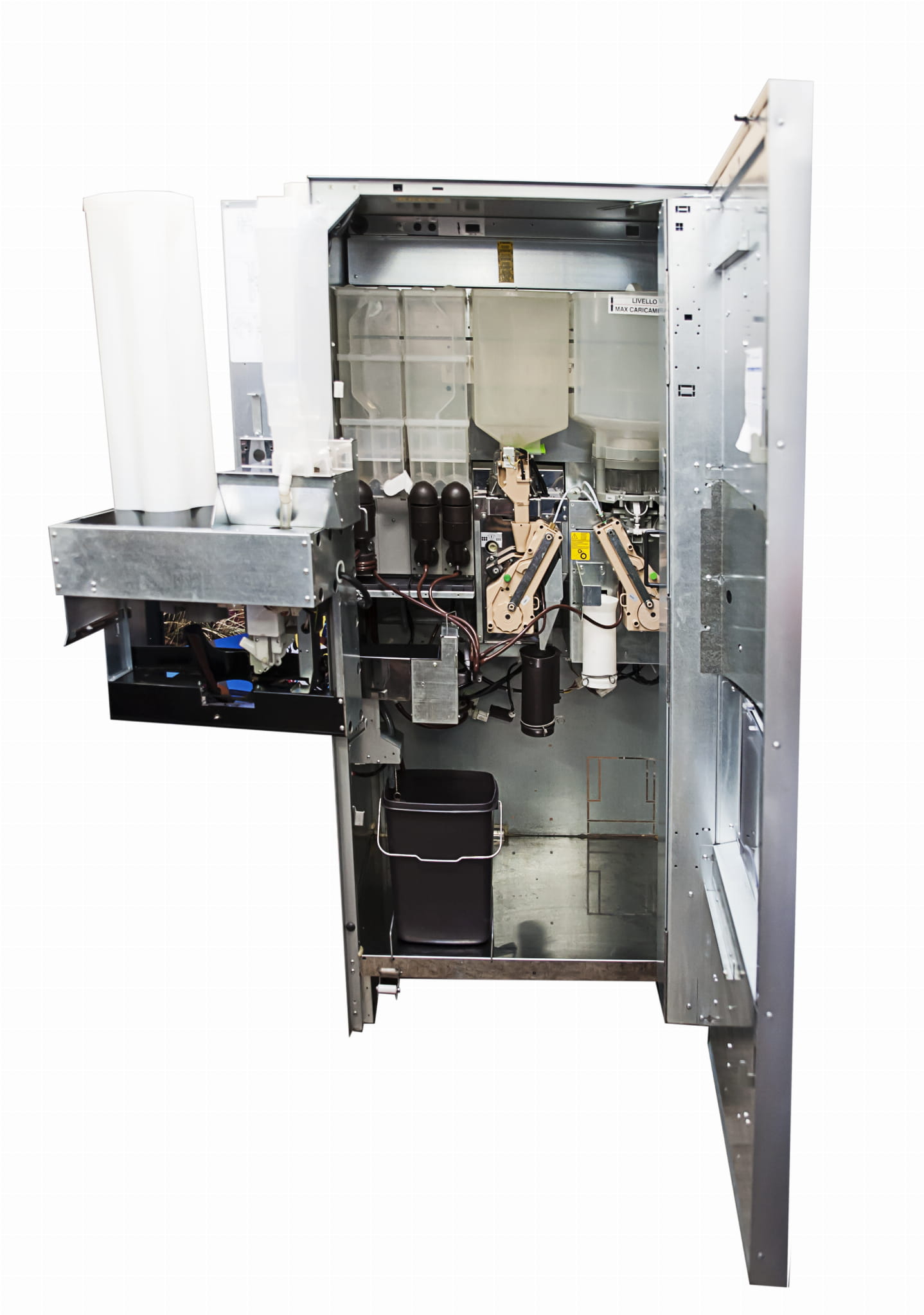 Автомат обслуживает различные горячие напитки на основе зернового, растворимого и в каспулах кофе